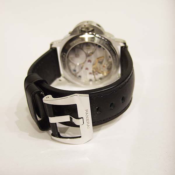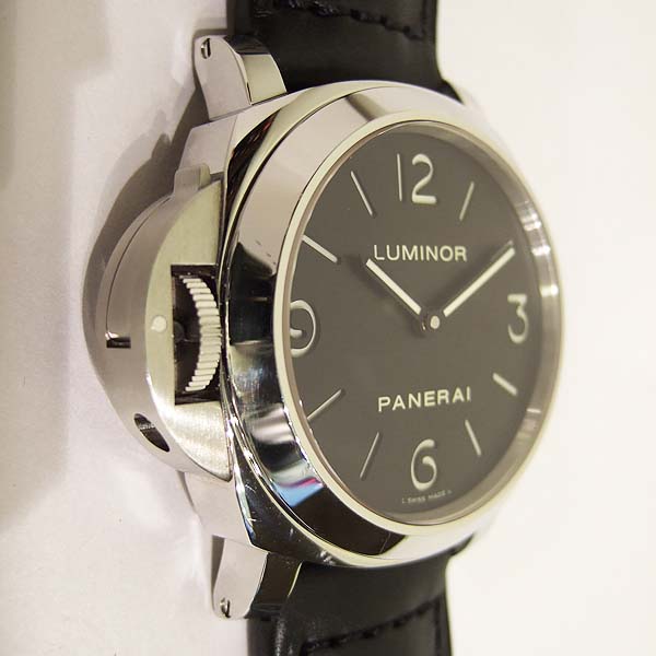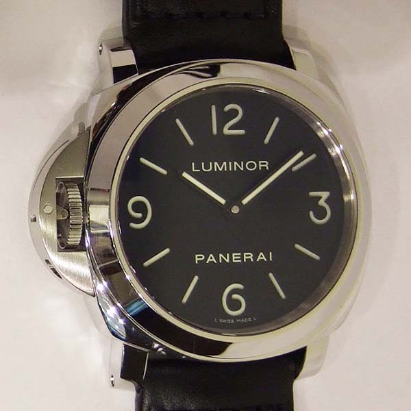Luminor Base Left-Handed 左撇子系列錶/ M 字頭限量600只/ 採Panerai OP X 手上鏈機芯/ 機芯為:16 1/2法分ˋ17石ˋ單一金屬Glucydur擺輪ˋ每小時擺率21600次ˋIncabloc防震裝置ˋ動力儲存約56小時/ 錶殼 44mm 亮面 316L 鋼材質/ 特殊專利龍頭護橋於錶殼左邊/ 黑色面盤,夜光指針及時標(三明治面盤)/ 藍寶石水晶玻璃(厚度3.5毫米),具抗反光塗層/ 透明錶背可見機心打磨/ 防水達300米/ 附原廠黑色牛皮錶帶/ 配ㄇ形錶扣(一般扣). |
