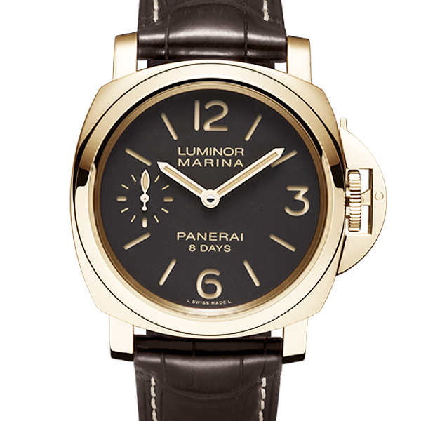 Luminor Marina 8 Days-44mm 系列腕錶/ 型號:PAM00511/ 採Panerai自製 P5000 手上鏈機芯/ 機芯為:15 3/4法分ˋ21石ˋ厚4.5毫米ˋ每小時擺率21600次ˋKIF 防震裝置ˋ動力儲存 8 日ˋ2個發條盒ˋ127個零件/ 黑色面盤/ 夜光時標及指針/ 錶殼 44mm 亮及霧面18K玫瑰金材質/ 特殊專利龍頭護橋/ 藍寶石水晶玻璃(厚度2.5毫米)具抗反光塗層/ 透明錶背可見機芯/ 防水達300米/ 附原廠黑色鱷魚皮錶帶及黑色膠帶各1條方便自行拆換,搭配梯形穿扣/ 盒內附一支精鋼螺絲起子。