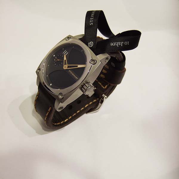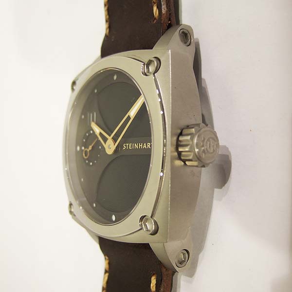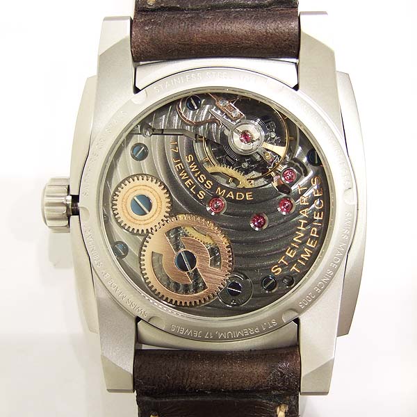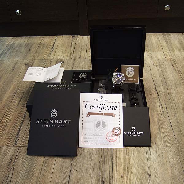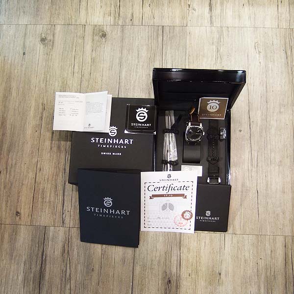 Steinhart 德國品牌錶/ Limited Edition 10周年限量腕錶/ 全球限量:111只/ 型號:L0810/ 採瑞士 ETA Unitas 6497-1 手上鏈機芯/ 機芯為:17石ˋ動力儲存約:50小時/ 具時ˋ分ˋ秒指示/ 黑色禪風枯山水風味暗紋面盤/ 夜光圓點時標,10 點時標特別加上刻空 10 數字,象徵此錶廠 10 周年紀念/ 金色指針/ 手錶尺寸: 44mm X 44 mm 錶徑,厚:14.8mm,重:137 公克/ AR 塗層的半球形的藍寶石水晶玻璃鏡面/ 透明底蓋,清楚鑑賞同心圓日內瓦波紋精緻打磨,鍍鈦合金機芯板,玫瑰金色發條齒輪,黃 K 金色砝碼擺輪, 3 色配置更添精緻機芯打磨作工/ 搭配 24mm 咖啡色瑞士彈夾牛皮錶帶/ ㄇ字型鋼質錶扣/ 防水: 30米.