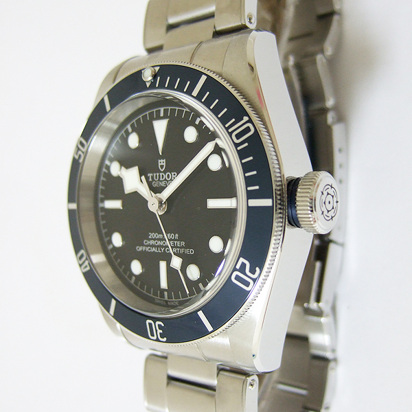 TUDOR 帝舵潛水腕錶/ 型號:79350B/ 採原廠自製 MT5602 自動上鏈機芯,動力儲存約:70小時,獲C.O.S.C.天文台精準認證,雙向上鏈系統/ 黑色錶盤/ 具時ˋ分ˋ秒指示/ 銀邊框時標及標誌線時標(具夜光功能)/ 銀邊框雪花型指針/ 可單向旋轉藍色潛水錶圈,可計算入水時間/ 錶徑尺寸: 41 mm/ 藍寶石水晶玻璃/ 全錶 316 L 鋼材質/ 搭配原廠鉚釘鋼質鏈帶及折疊式錶扣/ 旋入式錶冠,刻有帝舵玫瑰標誌/ 防水 200 米.