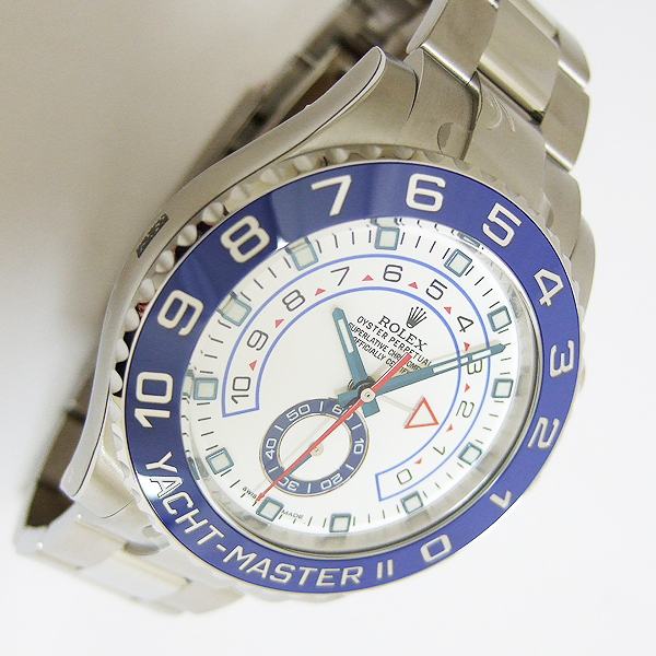YACHT-MASTER II 遊艇名仕腕錶/ 型號:116680/ 亂碼字頭/ 採自動上鏈機芯/ 機芯編號:4165機芯為:鍍銠機芯有魚鱗紋及日內瓦波紋打磨,42石,五方位調校,KIF避震裝置,雙層鈮鋯合金游絲(具天文台認證 C.O.S.C),高抗震,抗磁專利Parachrom游絲/ 錶徑:44mm/ 具時ˋ分ˋ秒ˋ10 分鐘到計時指示功能/ 白色面盤,劍型指針,具夜光功能,有防偽刻印錶圈/ 夜光時標及指針/ 單向旋轉式藍色陶瓷錶圈/ 藍寶石水晶玻璃/ 904L不鏽鋼材質原廠鏈帶及折疊式帶扣/ 防水深度達100米. |