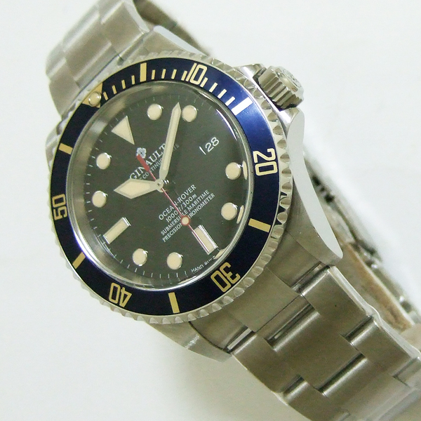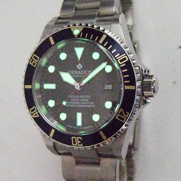 GINAULT 吉諾美國品牌潛水錶/ 型號:181270GSLN/ 採原廠自製編號:7275 自動上鏈機芯, 動力儲存:38小時/ 具時ˋ分ˋ秒指示及 3 點方位日期顯示/ 黑色面盤, 6 點方位4排白字/ 舊化夜光指針及標誌型時標/ 全錶拋霧 316 L 不鏽鋼材質/ 深藍色單向旋轉外圈,可計算入水時間/ 手錶尺寸: 40mm 錶徑/ 30.4弧形藍寶石水晶水晶玻璃/ 搭配原廠蠔式錶帶及折疊式錶扣/ 防水: 300 米(ISO 6425 認證潛水錶).
