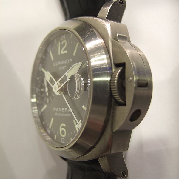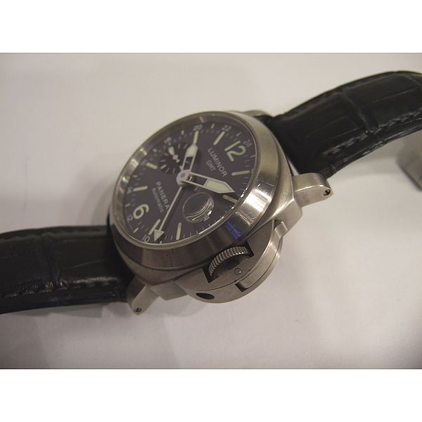 Luminor GMT 腕錶/ 型號:00089/ G 字頭限量 300 只/ 機蕊為獨特PANERAI OP VIII自動上鏈機械式機蕊/ 機芯為:13又1/4法分ˋ21石ˋ 震頻28800ˋ錶橋與擺重刻有PANERAI字樣ˋ42小時動能儲存ˋ獲天文台認證(C.O.S.C)/ 錶徑:44mm/ 湛藍金屬光色錶面/ 夜光時標與指針/ 藍寶石水晶鏡面/ 防水300米/ 附替代用深藍色牛皮壓鱷魚皮帶和原廠橡膠錶帶各一條及原廠鈦合金摺疊式錶扣. |