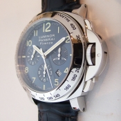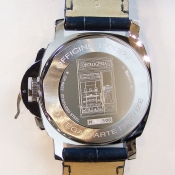 簡述:	Luminor Chrono FIRENZE 專賣店限量腕錶/ 型號:000224/ H 字頭限量 100 只/ 機蕊為獨特 PANERAI OP VIII自動上鏈機械式機蕊/ 機芯為:13又1/4法分,21石,震頻28800,錶橋與擺重刻有PANERAI字樣,42小時動能儲存,具天文台認證( C.O.S.C)/ 具時ˋ分ˋ秒指示,計時碼錶功能,4~5點間日期窗顯示/ 錶徑:44mm/ 湛藍色金屬光澤錶面,12點方位因ˋ有 FIRENZE 字樣/ 夜光時標與指針/ 藍寶石水晶鏡面/ 錶背刻有FIRENZE 專賣店,店門口圖驣/ 防水300米/ 附原廠深藍色鱷魚壓紋牛皮錶帶一條及原廠黑色橡膠錶及原廠折疊式錶扣.