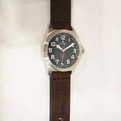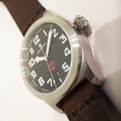 字樣/ 銀色指針具夜光效果/ 夜光處理阿拉伯數字/ 標誌型分標/ 全錶拋光或霧 316 L 不鏽鋼材質/ 手錶尺寸: 42mm 錶徑,厚:13 mm ,重 100克 / 防炫藍寶石水晶玻璃/ 搭配原廠 22mm 咖啡色錶帶及鋼質錶扣(穿扣)/ 防水: 100 米