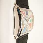 簡述:	MASTER SQUARE 腕錶/ 型號:6000 H SC DT/ 採自動機芯/ 具時ˋ分ˋ秒指示/ 白色錶面/ 獨特具藝術感彩色色羅馬數字時標/ 桃型藍鋼指針/ 18K白金錶殼,原廠 18K 白金ㄇ字帶扣/ 手錶尺寸:36 X 36 mm/ 藍寶石水晶鏡面/ 搭配原廠黑色鱷魚皮錶帶/ 日常生活防水 30 米.