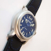 簡述: 400 米防水自動腕錶/ 型號: 400M-2 腕錶/ 採日本 Miyots 9015 自動上鏈機芯/ 動力儲存約:40小時/ 具時ˋ分ˋ秒指示及日期顯示/ 藍色面盤(三明治面盤)/ 夜光阿拉伯數字及立體標誌型時標/ 夜光指針/ 全錶採用 316L 不銹鋼材質/ 旋入式大錶冠/ 手錶尺寸: 42mm 錶徑/ 藍寶石水晶玻璃及透明底蓋/ 搭配 22mm 原廠藍色牛皮錶帶/ 原廠ㄇ型錶扣(一般扣)/ 防水:400 米(300ATM).