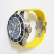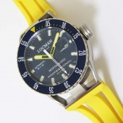 簡述:	義大利 LOCMAN 蒙特克里斯托系列潛水腕錶/ 型號:513/ 採原廠自動上鏈機芯/ 動力儲存約:40小時/ 具時ˋ分ˋ秒指示及日期顯示窗/ 藍色金屬光澤面盤, 6 點方位印有 DIVER 黃色字樣/ 夜光指針/ 標誌型時標/ 全錶拋霧 316L不鏽鋼材質/ 藍色旋轉外圈(覆蓋藍寶石水晶鏡面),可查入水時間/ 手錶尺寸: 43mm 錶徑,厚:13 mm / 藍寶石水晶玻璃(3 點方位日期放大鏡)/ 搭配原廠黃色鏤空橡膠錶帶及雙向折疊式鋼質錶扣/ 防水: 100 米.