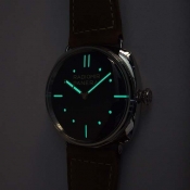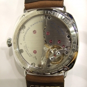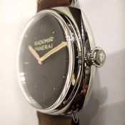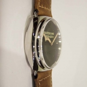 Radiomir S.L.C. 3 Day - 47mm 3日鏈腕錶/ 型號:PAM00425/ O 字頭限量製作1500只/ 採自製編號:P.3000 手上鏈機芯, 厚:5.3mm,16 1/2法分, 21石, 2 個發條盒,Glucydur平衡擺輪,每小石震頻 21,600次,Incabloc防震裝置,3 天動力儲存, 2 個發條盒,160個零件,完全由PANERAI研製/ 具時ˋ分ˋ指示/ 黑色3明治面盤, 6 點方位魚雷載具(人豬)浮雕/ 夜光指針及時標/ 錶徑: 47 mm/ 精鋼拋亮錶殼/ 圓弧形藍寶石水晶鏡面,透明錶背/ 防水達100米/ 搭配原廠深咖啡色舊化處理牛皮錶帶/ 大ㄇ型(普通型)鋼質扣頭.