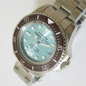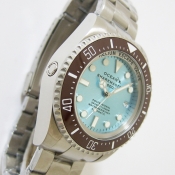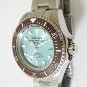 SHARKMASTER 1000 潛水腕錶/ 型號:SMS1015/ 採 SEIKO NH35 自動上鏈機芯,動力儲存約:41小時, 24 顆紅寶石,28800vph/ 冰藍色錶盤/ 具時ˋ分ˋ秒指示,3點方位日期顯示窗/ 冷光藍夜光立體時標及標誌線時標/ 可單向旋轉咖啡色陶瓷潛水錶圈,可計算入水時間/ 手錶尺寸: 44 mm,厚:17.1mm/ 藍寶石水晶玻璃/ 全錶 316 L 鋼材質,錶殼左側設有排氦氣閥/ 搭配原廠鋼質鏈帶及折疊式錶扣/ 防水 1000 米.