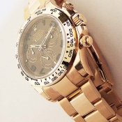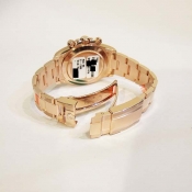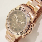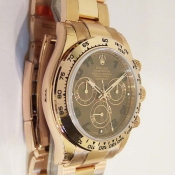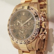 勞力士蠔式宇宙計型迪通拿腕錶/ 型號:116505/ 亂碼字頭(有防偽 ROLEX 字樣及流水號碼內圈)/ 18K 玫瑰金天文台錶/ 採自動上鏈機芯,機芯為:Cal:4130ˋ鍍銠機芯有魚鱗紋及日內瓦波紋打磨ˋ44顆紅寶石ˋ五方位調校ˋKIF避振裝置ˋ四臂環形合金擺輪ˋ無快慢針由四顆螺絲微調快慢ˋ雙層合金游絲ˋ橫跨式橋板ˋ由柱狀星形凸輪控制計時碼錶的啟動.停止.歸零ˋ雙向自動上鏈/ 蠔式摺疊扣錶帶/ 具時ˋ分ˋ秒指示及計時碼錶功能/ 刻有分度外圈方便即時計時速度ˋ生產速度等/ 旋入式表冠及旋轉按鈕錶冠/ 自動上鏈/ 巧克力色錶面/ 綠色阿拉伯數字時標及指針,具夜光效果/ 藍寶石水晶鏡面/ 蠔式錶帶及新款折疊式錶扣/ 防水深達:100米.