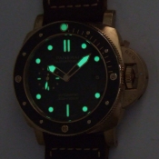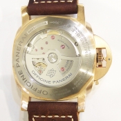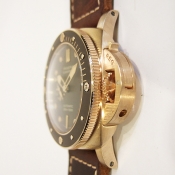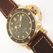 簡述:	Luminor 1950 Submersible 3 Days Automatic/ 型號:PAM00968/  V字頭限量製作 1000 只/ 採用沛納海P.9010自動上鏈機芯,機芯完全由沛納海自製ˋ 具72小時動能儲存(3 天)/ 具時ˋ分ˋ小秒指示, 日期顯示視窗/ 專利防水錶冠護橋裝置/ 錶徑:47mm,霧面青銅材質/ 咖啡色陶瓷單向逆時針方向旋轉潛水計時錶圈,可計算潛水時間刻度以分鐘為單位的固定爪/ 咖啡色面盤/ 夜光指針與時標/ 藍寶石水晶鏡面,厚度 4 毫米,抗炫光塗層/ 透明錶背/ 防水300米/ 附原廠折紋綠色橡膠錶帶及咖啡色牛皮原廠皮帶/ 鈦合金大型ㄇ形穿扣.
