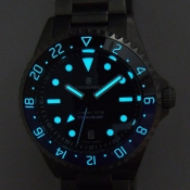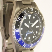 簡述: OCEAN GMT Premium 500 腕錶/ 型號:103-0662/ 採瑞士自動上鏈機芯, 21 顆紅寶石, 動力儲存約:40小時/ 具時ˋ分ˋ秒指示及 6 點方位日期顯示,地 2 地時間指示/ 黑色面盤, 6 點方位印有藍底白字 TITANIUM GMT 藍色字樣/ 夜光指針及標誌型時標/ 全錶拋霧鈦合金材質/ 黑及藍色陶瓷材質單向旋轉外圈,可判讀 2 地時間/ 手錶尺寸: 42mm 錶徑,厚: 13 mm , 重 146 克/ 防炫藍寶石水晶水晶玻璃/ 搭配原廠蠔式錶帶及折疊式錶扣/ 防水: 500 米.