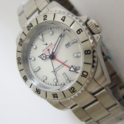 簡述:	SHARKMASTER GMT II 潛水腕錶/ 型號:SMS-GMT-232/ 採瑞士製編號:505.24H石英機芯/ 具時ˋ分ˋ秒指示及日期顯示,第 2 地時間指示針/ 白色面盤/ 黑色邊框夜光指針及立體標誌型時標/ 全錶拋霧或亮面不鏽鋼材質/ 鋼質旋轉外圈,可查第 2 第時間/ 手錶尺寸: 42mm 錶徑,厚:14 mm  / 防眩藍寶石水晶玻璃/ 搭配原廠蠔式錶帶及折疊式錶扣/ 防水:200 米.