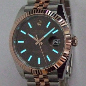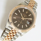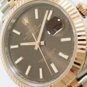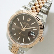 簡述:	勞力士蠔式 DATEJUST 41腕錶/ 型號:126331/ 亂碼字頭/ 採自動上鏈機芯/ 機芯編號:3235, 採用新研發的 CHRONERGY 擒縱系統,五方位調校,配備 PARACHROM游絲的平衡擺輪,四臂環形合金擺輪,四顆微調快慢螺絲,KIF避振裝置,天文台認證(C.O.S.C.)/ 錶徑41mm/ 具時ˋ分ˋ秒針指示及日期放大鏡顯示/ 咖啡色金屬光面盤搭配標線型刻度/ 夜光指針及時標/ 錶盤內圈刻有一圈防偽 ROLEX 字樣及流水號碼/ 藍寶石水晶玻璃鏡面, 3 點方位設有放大鏡/ 18K玫瑰金太陽錶圈/原廠不鏽鋼及玫瑰金五株式鏈帶及折疊式錶扣/ 防水達 100 米.