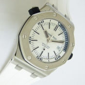 簡述:	皇家橡樹離岸型潛水錶/ 型號:15710ST.OO.A010CA.01/ 採自動上鏈機芯/ 錶徑:42mm / 具時ˋ分ˋ秒指示和 3 點方位日期顯示窗,10方位潛水時間調整紐/ 白色格紋面盤,搭配藍色潛水時間內錶圈/ 標線型時標,具夜光功能/ 機芯編號:3120,機芯為: 21K金自動盤,雙向自動上鏈,動力儲存約 60 小時/ 藍寶石水晶玻璃/ 防水300米/ 搭配原廠白色膠帶及鋼質扣.
