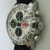 簡述:	CHOPARD 蕭邦 Millle Miglia 系列賽車錶/ 型號:16/8994/ 採蕭邦原廠自製自動上鏈機芯,獲天文台認證(C.O.S.C)/ 具時ˋ分ˋ秒指示/ 3點方位日期顯示窗/ 地 2 地時間指示/ 銀白面盤,搭配黑色計時圈顯現賽車風範/ 標誌型時標/ 銀邊指針(具夜光效果)/ 鋼質亮面拋光處理錶殼/ 大型錶冠/ 手錶尺寸: 42mm 錶徑 / 藍寶石水晶玻璃鏡面/  底蓋刻有賽事路線圖及限量編號/ 搭配 20mm 黑色原廠胎紋橡膠錶帶/ 精美原廠折疊式錶扣/ 日常防水: 50米.
