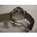 簡述: Luminor Chrono Daylight 計時錶/ H 字頭全球限量 1500 支/ 型號:PAM00196/採用OP XII 自動上鏈機心/ 具時、分、日期.小秒針顯示/ 計時碼錶功能/ 夜光指針及時標/ 錶徑:44mm/ 316L 精鋼材質/ 藍寶石水晶鏡面/ 專利氣閥保護拉桿鎖緊式錶冠/ 防水深度達100米/ 原廠摺疊式錶扣/ 原廠黑色膠帶及黑色鱷魚皮錶帶各 1 條/ 曾於多部好萊鄔賣座強片中出現此款手錶/ 停產錶款.