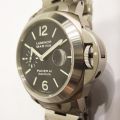 簡述: Luminor GMT 腕錶/ 型號:00221/ I 字頭限量 400 只/ 機蕊為獨特 PANERAI OP VIII自動上機蕊,機芯為:13又1/4法分,21石,震頻28800,錶橋與擺重刻有PANERAI字樣,42小時動能儲存,具天文台認證(C.O.S.C)/ 具時ˋ分ˋ秒ˋ日期/ 錶徑:44mm,錶殼:AISI 316L 霧面精鋼或霧面鈦合金/ 黑色錶面,夜光時標與指針/ 藍寶石水晶鏡面,厚度 3.5 毫米,抗反光塗層/ 防水300米/ 附原廠 AISI 316L 拋霧精鋼或霧面鈦合金鏈帶及原廠折疊式錶扣.