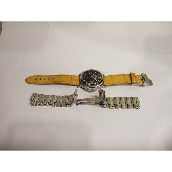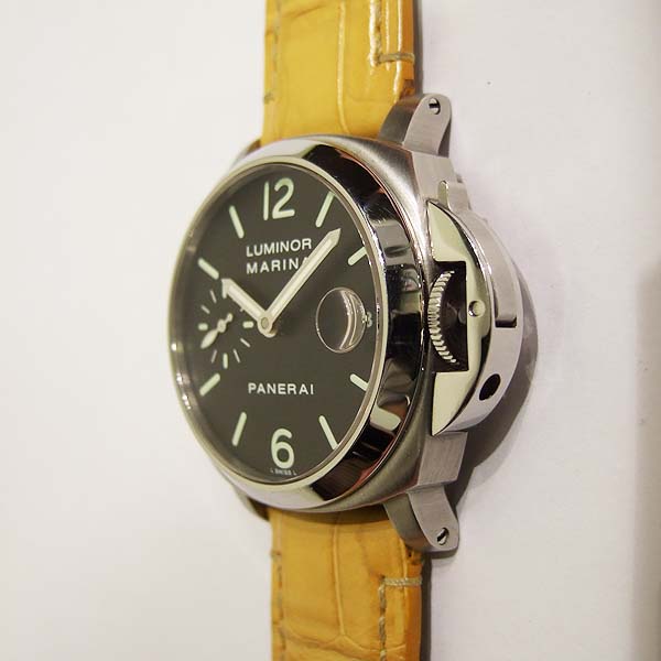 簡述: Luminor 自動腕錶/ 型號:PAM-00048/ E 字頭限量 5000 只/ 採用 Panerai OP III 自動上鏈機芯/ 機芯為:21石ˋ每小時擺率28800次ˋIncabloc防震裝置ˋ動力儲存約42 小時ˋ獲天文台認證/ 具時ˋ分ˋ小秒針指示ˋ日期顯示/ 錶殼直徑:40mm / 316L 拋光及霧面精鋼材質/ 藍寶石水晶鏡面/ 防水達300米/ 可調節式摺疊扣/ 附原廠黃色鱷魚皮錶帶及加購的原廠鋼質鏈帶.