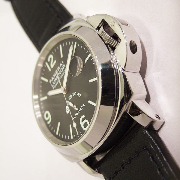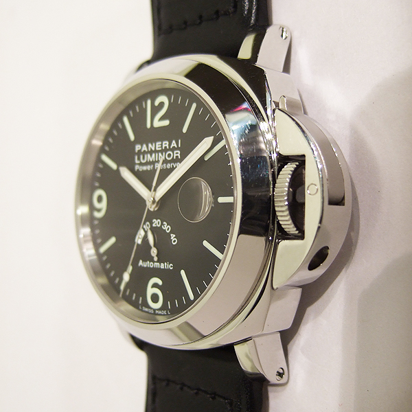 Luminor 動力儲存腕錶/ 型號:PAM00027/ C 字頭限量 2000 只/ 採自動上鏈機械式機蕊/ 機蕊為: Soprod 9040 型為基礎, 機芯為:24石ˋ 震頻28800ˋ錶橋與擺重刻有PANERAI字樣ˋ天文台認證/ 具時ˋ分ˋ小秒針指示/ 3 點方位日期視窗/ 6點方位40小時扇形動能儲存指示盤/ 黑色錶面/ 錶徑:44mm / 316 L 精鋼拋光處裡錶殼/ 藍寶石水晶鏡面 / 防水300米/ 附原廠黑色牛皮錶帶及膠帶/ ㄇ 型一般錶扣. |
