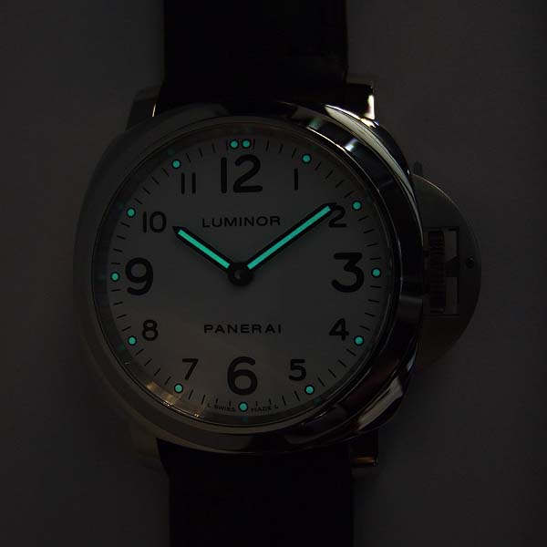 Luminor Base 系列腕錶/ 型號:PAM00114/ L 字頭限量500只/ 採Panerai OP X 手上鏈機芯/ 機芯為:16 1/2法分ˋ17石ˋ單一金屬Glucydur擺輪ˋ每小時擺率21600次ˋIncabloc防震裝置ˋ動力儲存約56小時/ 具時ˋ分指示/ 白色面盤,黑色阿拉伯數字時標及分鐘標線/ 夜光指針及時鐘標點/ 錶殼 44mm 亮面 316L 精鋼材質/ 特殊專利龍頭護橋/ 藍寶石水晶玻璃(厚度3.5毫米),抗反光塗層/ 透明錶背/ 搭配原廠黑色牛皮錶帶一條,方便自行更換/ ㄇ型錶扣(普通扣)/ 防水達300米. |