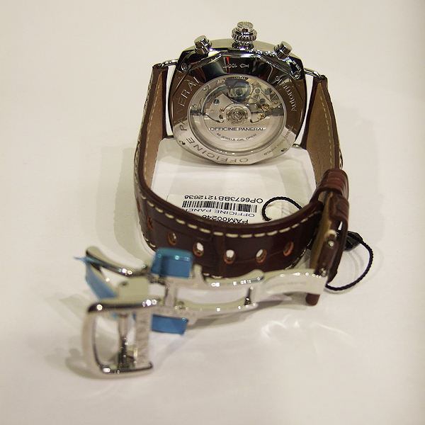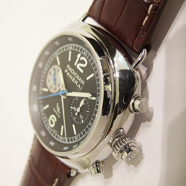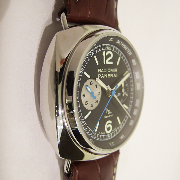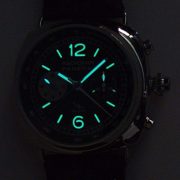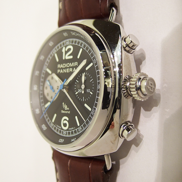 2.1936年沛納海為義大利海軍製作之原型(Radiomir系列), Radiomir 1/8 秒閃電雙追針腕錶保持原創設計,更加入機械計時碼錶中最不可能的任務--1/8 秒閃電雙追針,可以計時至1/8秒,成為收藏家眼中難得的收藏品. |