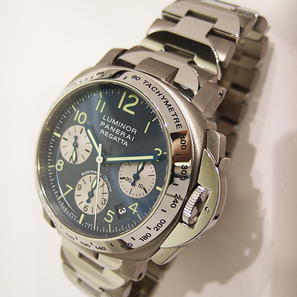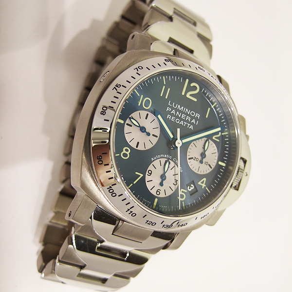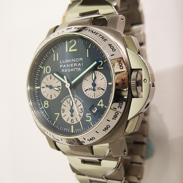 Luminor Marina 2003 年限量 REGATTA 自動計時腕錶/ 型號:PAM-00168/ 絕版停產限量款,僅限量製作 399 只 / 採用 Panerai OP XII 自動上鍊機芯/ 機芯為: Incabloc 防震裝置ˋ 動力儲存約 42 小時ˋ 獲天文台認證(C.O.S.C)/ 具時.分.小秒針指示,4~5點間日期顯示窗,計時碼錶功能/ 錶殼40mm, 316L 拋光精鋼及晤面鈦合金材質/ 藍寶石水晶鏡面/ 原廠鏈帶及可調節式摺疊扣/ 防水達300米.
