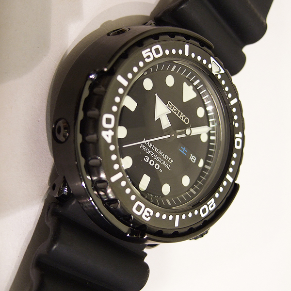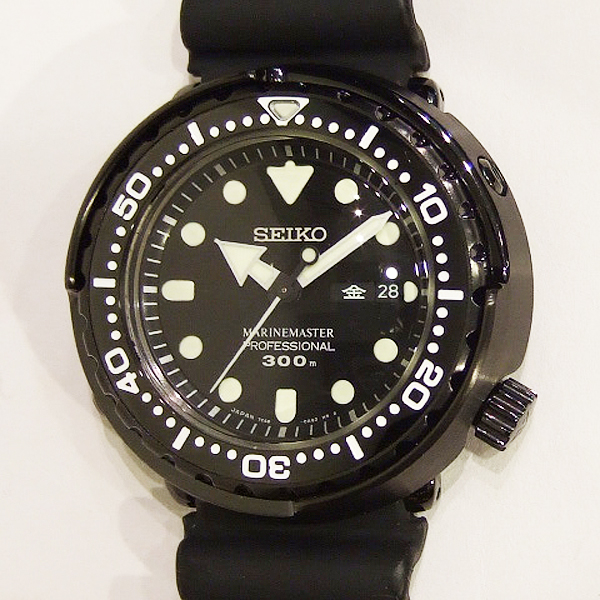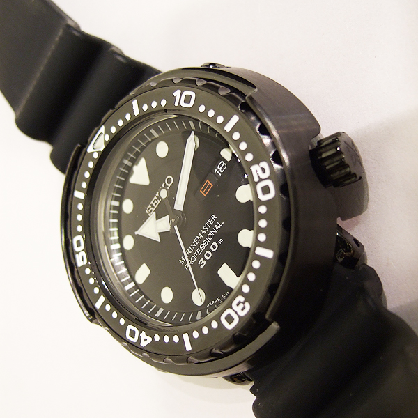 SEIKO 日本鮪魚罐頭腕錶/ 型號:SBBN0353/ 採 SEIKO 石英機芯/ 黑色錶盤/ 具時ˋ分ˋ秒指示,3點方位日期及星期顯示窗/ 鋼質錶殼,黑色PVD處理/ 夜光指針及時標/ 手錶尺寸: 47 mm 錶徑/ 強化玻璃風防/ 搭配原廠黑色膠帶及ㄇ型PVD黑色 一般穿扣/ 防水 300 米.