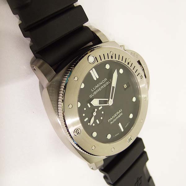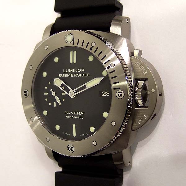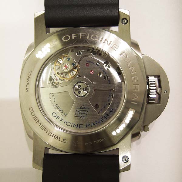 Luminor 1950 Submersible 3 Days Automatic/ 型號:PAM00305/ S 字頭限量製作 1000 只/ 採用沛納海P.9000自動上鏈機芯,機芯完全由沛納海自製ˋ 具72小時動能儲存(3 天)/ 具時ˋ分ˋ小秒指示, 日期顯示視窗/ 專利防水錶冠護橋裝置/ 錶徑:47mm,磨砂鈦合金/ 單向逆時針方向旋轉潛水計時錶圈,可計算潛水時間刻度以分鐘為單位的固定爪/ 黑色面盤/ 夜光指針與時標/ 藍寶石水晶鏡面,厚度 4 毫米,抗訪光塗層/ 透明錶背/ 防水300米/ 附原廠折紋黑色橡膠錶帶及黑色牛皮原廠皮帶/ 大型ㄇ形穿扣扣. |