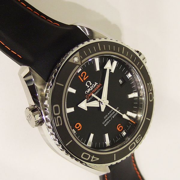 Seamaster-Planet Ocean-600m 潛水腕錶 / 型號: 23232462101005 / 採 Omega 8500 自動上鏈機芯/ 具時ˋ分ˋ秒指示, 3 點方位日期視窗/ 黑色面盤/ 橘色 6.9.12阿拉伯數字及白色標誌型及標誌線時標(具夜光效果)/ 白鋼色指針(具夜光效果)/ 鋼質霧或亮面處理錶殼, 10 點方為手動式排氦閥鈕/可單向旋轉潛水錶圈,可計算入水時間/ 旋入式錶冠/ 手錶尺寸: 45.5mm 錶徑 / 藍寶石水晶鏡面/ 鋼質底蓋/ 搭配 22mm 原廠黑色橡膠車橘線錶帶及原廠折疊式錶扣/ 防水: 600米.