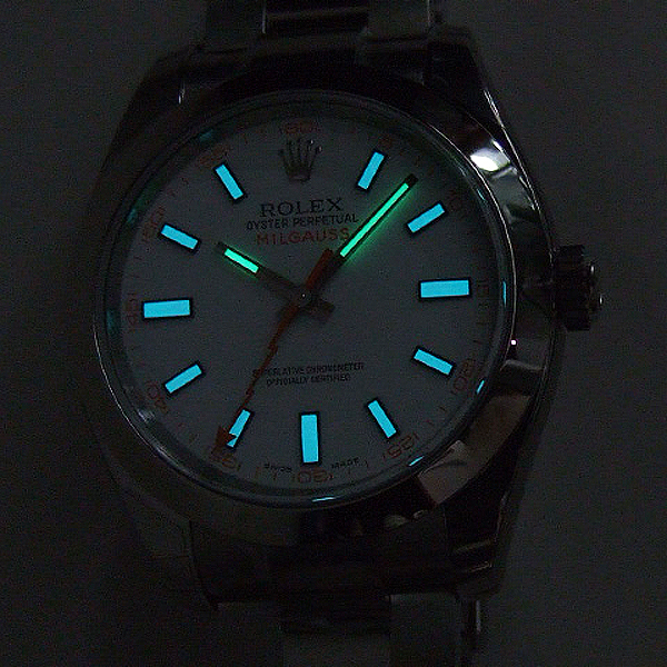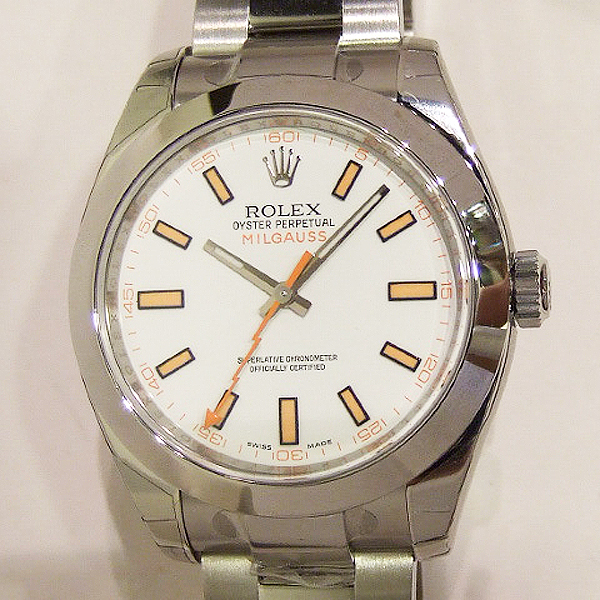 | 簡述: | Milgauss 抗磁腕錶/ 型號:116400/  V 字頭/ 採自動上鏈機芯/ 機芯編號:3130, 具天文台認證(C.O.S.C.)/ 錶徑40mm/ 具時ˋ分ˋ秒針(秒針為橘色閃電針)指示/ 白色面盤/ 夜光指針及時標/ 錶盤內圈刻有一圈防偽 ROLEX 字樣及流水號碼/ 藍寶石水晶玻璃鏡面/ 原廠蠔式鏈帶及折疊式錶扣/ 防水100米. |