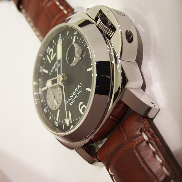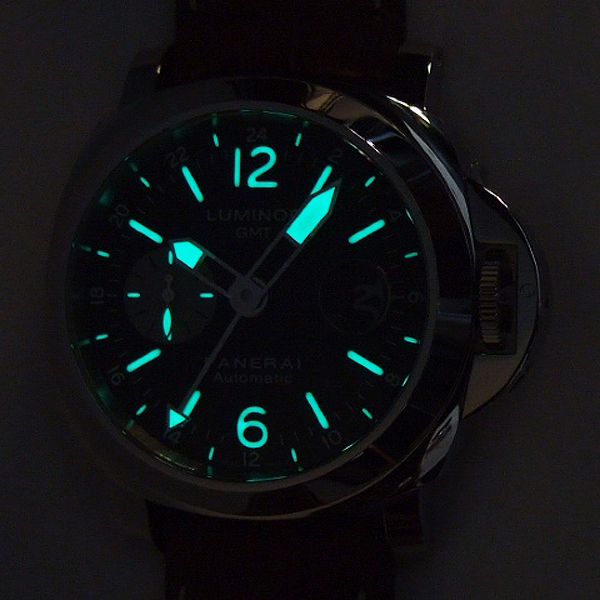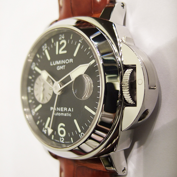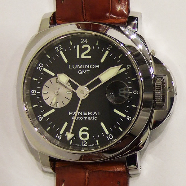 Luminor GMT 腕錶/ 型號:00088/ N 字頭限量 2000 只/ 機蕊為獨特 PANERAI OP VIII自動上鏈機械式機蕊/ 機芯為:13又1/4法分,21石,震頻28800,錶橋與擺重刻有PANERAI字樣,42小時動能儲存,具天文台認證( C.O.S.C)/ 錶徑:44mm/ 黑色錶面ˋ夜光時標與指針/ 藍寶石水晶鏡面/ 防水300米/ 附原廠全新未使用咖啡色鱷魚皮錶帶一條及原廠折疊式錶扣/ 錶盒內附工具方便拆換.