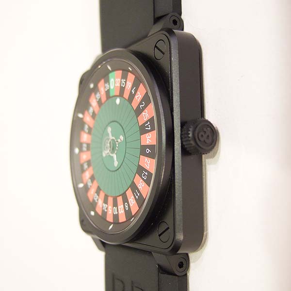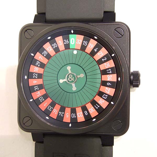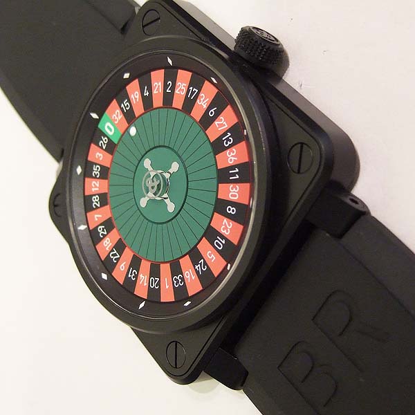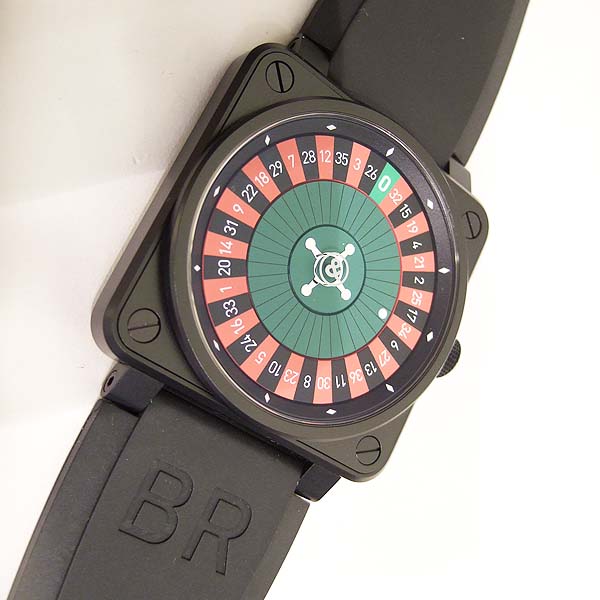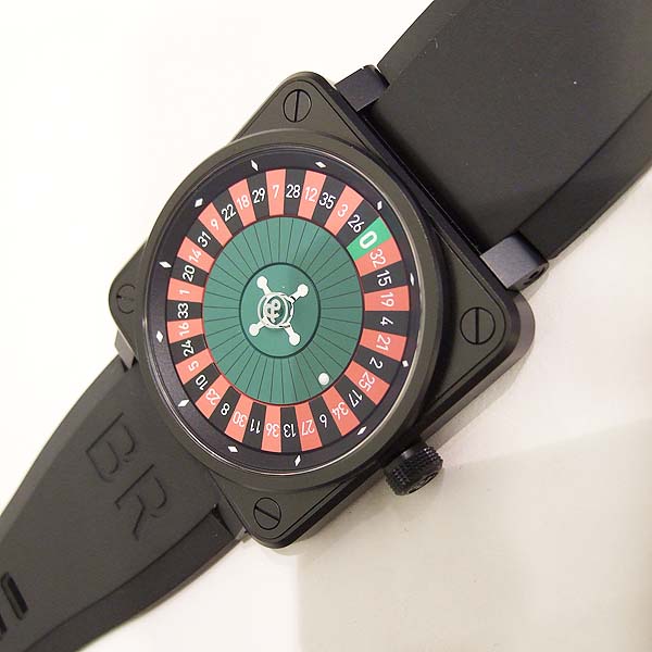 CASINO 造型限量腕錶/ 型號:BR-01-92-CA-BE/ 全球限量 99 只/ 採自動上鏈機芯(Cal:ETA 2892)/ 機芯為:鍍銠機芯魚鱗紋打磨ˋ因加百錄避振器ˋ雙向自動上鏈ˋ21顆紅寶石ˋ每小時振頻:28800次/ 錶徑: 46 X 46mm/ 具時ˋ分ˋ秒指示(仿造俄羅斯輪盤方式顯示時間)/ 俄羅斯輪盤面盤/ 夜光時標及指針/ 旋入式錶冠/ 藍寶石水晶玻璃鏡面/ 防水100米/ 附原廠軍規尼龍錶帶及黑色橡膠錶帶含ㄇ字扣/ 盒內附有內 6 角鏍絲拆換工具 1 組方便自行拆換錶帶. |