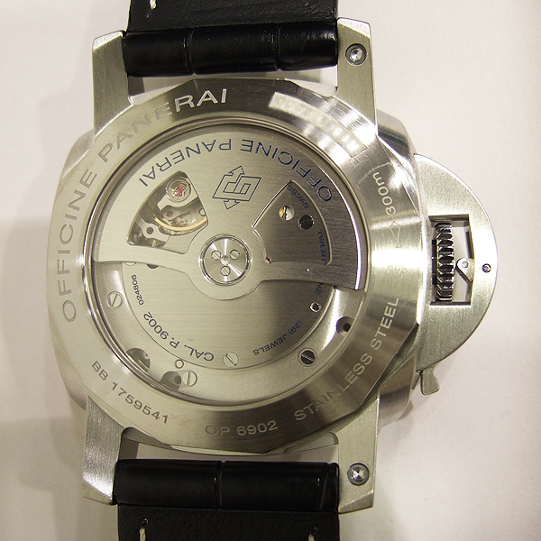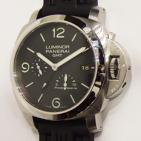 Luminor 1950 Marina 3 Day GMT Power Reserve 自動腕錶/ 型號:PAM-00321/ S 字頭(可快拆式錶帶),限量2000只/ 採用Panerai自製 P.9002 自動上鏈機芯/ 機芯為:13 3/4 法分ˋ 29石ˋ 每小時擺率 28800次ˋ Incabloc防震裝置ˋ 動力儲存 3 日/ 具時ˋ分ˋ小秒針ˋ日期顯示,第 2 地時間指示,動力儲存顯示,秒針歸零裝置/ 錶殼44mm 316L 拋光及霧鋼材質/ 黑色錶面(三明治錶盤)/ 夜光時標及指針/ 藍寶石水晶鏡面/ 防水達300米/ ㄇ型錶扣/ 附原廠黑色鱷魚皮錶帶. |
