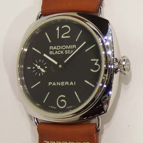 Radiomir Black Seal 腕錶/ 型號:PAM-00183/ K 字頭限量 1500 只/ 採用Panerai OP XI 手動上鏈機芯/ 機芯為:每小時擺率 28800次ˋIncabloc防震裝置ˋ 動力儲存約42 小時ˋ日納瓦波紋打磨ˋ獲天文台認證/ 具時ˋ分ˋ小秒針顯示/ 黑色錶面(三明治錶面,12 點方位 BLACK SEAL 字樣為最大特色)/ 錶殼45mm 316L 拋光精鋼質/ 搭配替代用棕色牛皮錶帶及原廠ㄇ型(一般)鋼質錶扣/ 藍寶石水晶鏡面/ 防水達100米. |
