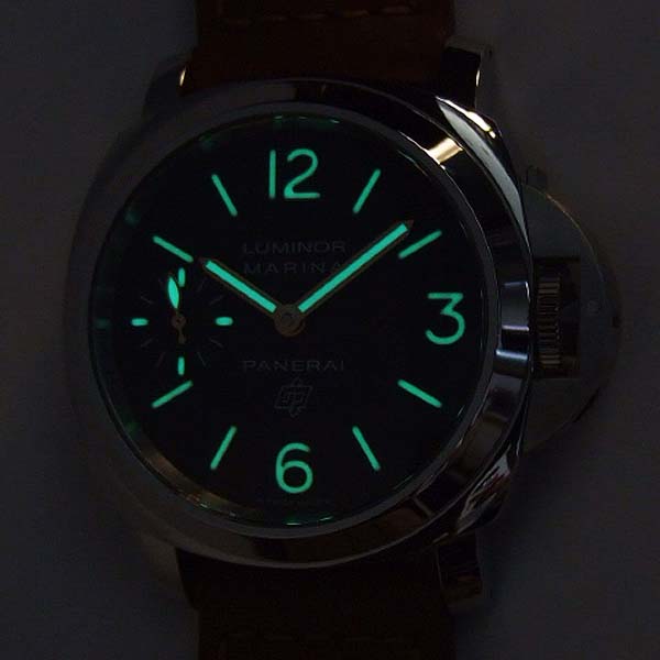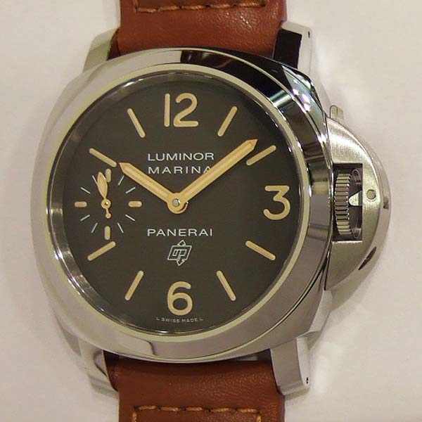 沛納海 Luminor Base 商標基本款專賣店限定款/ 型號:PAM00632/ T 字頭限量1000只/ 採Panerai OP I 手上鏈機芯/ 機芯為:16 1/2法分ˋ17石ˋ單一金屬Glucydur擺輪ˋ每小時擺率21600次ˋIncabloc防震裝置ˋ動力儲存約56小時/ 具時ˋ分ˋ秒指示/ 錶殼 44mm 亮面316L鋼材質/ 嵌入式錶底蓋/ 磨砂特殊龍頭護橋(PANERAI專利)/ 菸草色錶盤,夜光時標及阿拉伯數字, 6 點方位白色 OP 創廠 LOGO/ 藍寶石水晶玻璃,厚度3.5毫米,抗反光塗層/ 防水達100米/ 附原廠棕色牛皮錶 1 條/ 配大型精鋼錶扣.