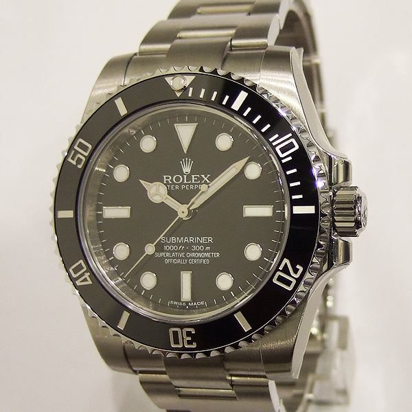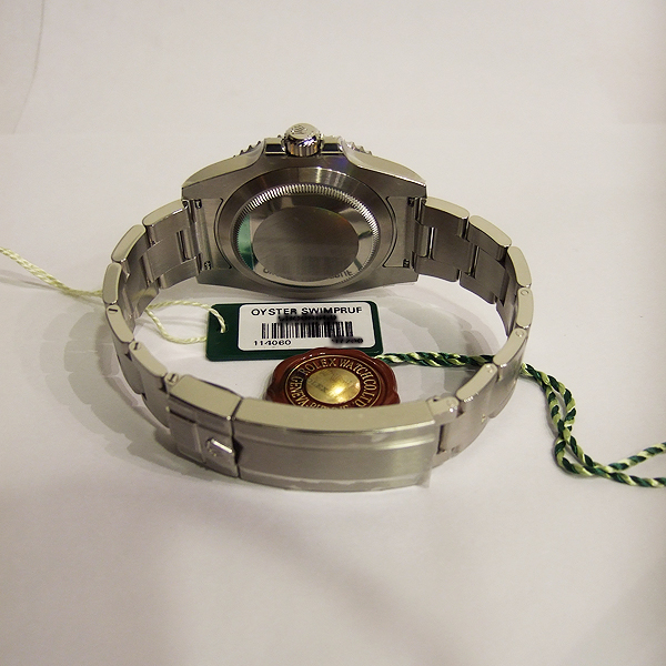 蠔式新款陶瓷合金潛水天文台錶/ 型號:114060/ 採自動上鏈機芯/ 機芯編號:3131,鍍銠機芯有魚鱗紋及日內瓦波紋打磨,31顆紅寶石,雙層合金游絲,四臂環形合金擺輪,雙向自動上鏈,KIF避振裝置,天文台認證(C.O.S.C.)/ 錶徑:40mm/ 具時ˋ分ˋ秒針指/ 黑色面盤/ 夜光指針及立體螢光時標/ 黑色陶瓷合金單向旋轉潛水計時外圈/ 錶盤內圈刻有一圈防偽 ROLEX 字樣及流水號碼/ 藍寶石水晶玻璃鏡面/ 原廠不銹鋼鏈帶及折疊式錶