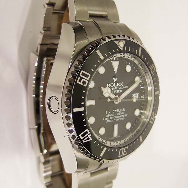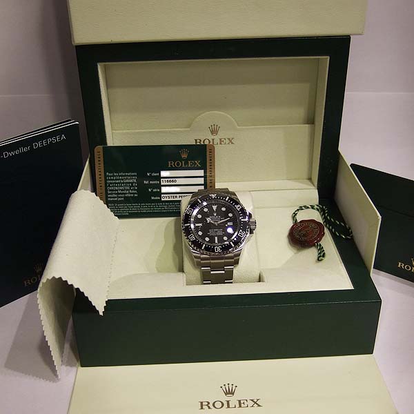 DEEPSEA / 型號:116660/ G 字頭/ 採自動上鏈機芯/ 機芯編號:3135/ 錶徑:44mm/ 具時ˋ分ˋ秒ˋ日期顯示/ 黑色面盤/ 有防偽刻印錶圈/ 夜光時標及指針/ 單向旋轉式陶瓷錶圈(可計算潛水時間)/ 機芯為:鍍銠機芯有魚鱗紋打磨ˋ31石ˋ五方位調校ˋ雙層合金游絲ˋ動力儲存 48 小時/ 藍寶石水晶玻璃/ 新式微調式帶扣/ 錶殼附有排氦裝置/ 可深度潛水達3900米.