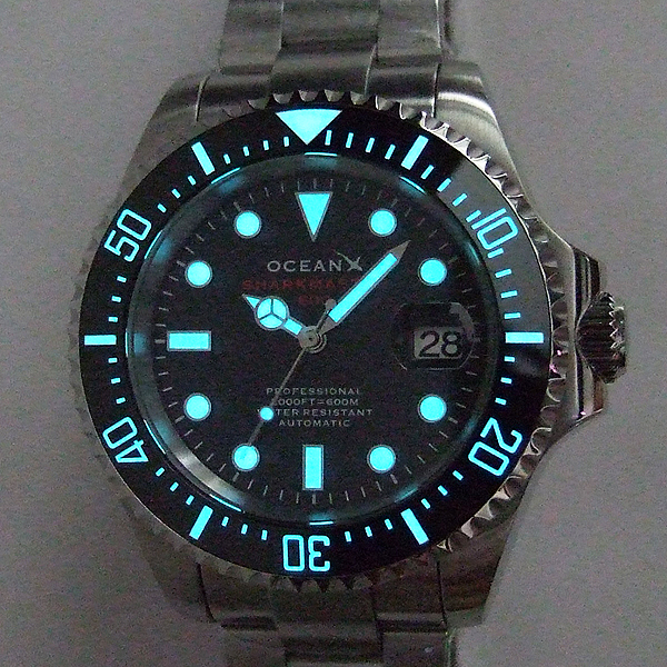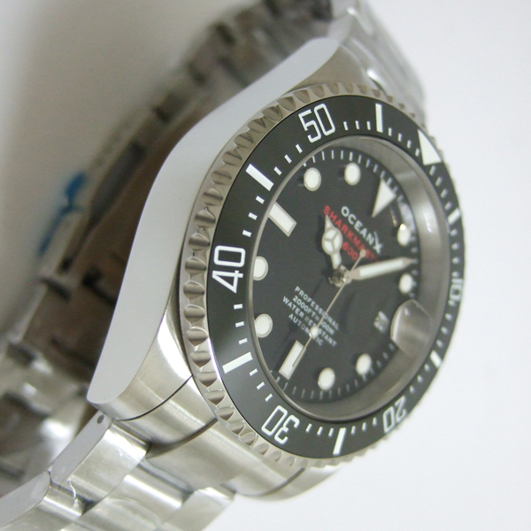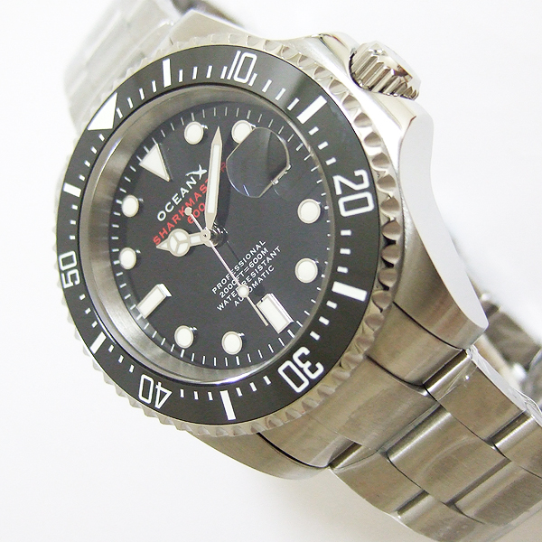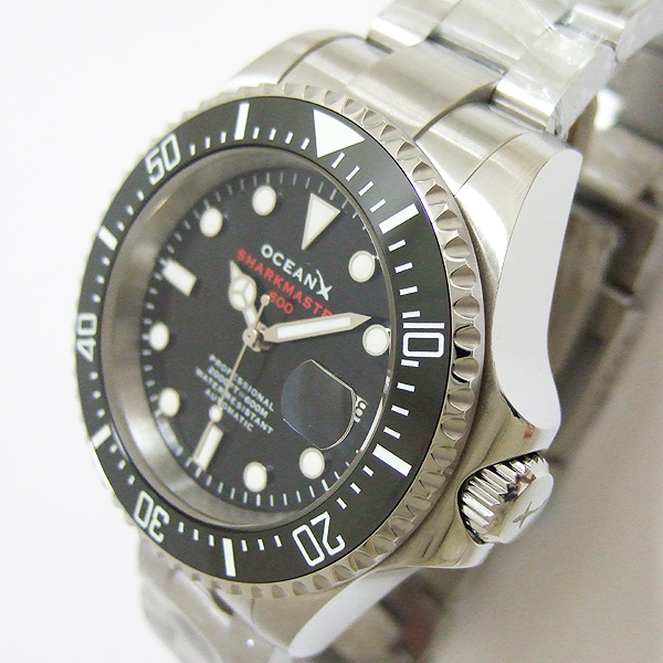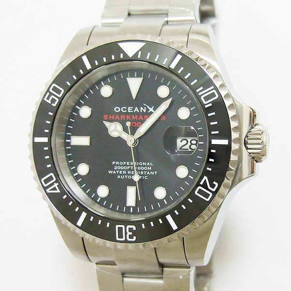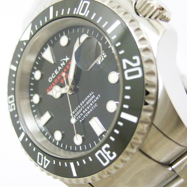 SHARKMASTER 600 潛水腕錶/ 型號:SMS600-11/ 採 SEIKO NH35 自動上鏈機芯,動力儲存約:40小時, 24 顆紅寶石,21600vph/ 黑色面盤,12點方位有打上 SHARKMASTER 600 紅色字樣/ 具ˋ分ˋ秒指示,3點方位日期顯示窗/ 冷光藍夜光立體時標及標誌線時標/ 可單向旋轉黑色陶瓷潛水錶圈,可計算入水時間/ 手錶尺寸: 44 mm,厚:15mm/ 藍寶石水晶玻璃/ 全錶 316 L 鋼材質/ 搭配原廠鋼質鏈帶及折疊式錶扣/ 防水 600 米. |