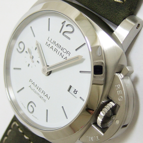 Luminor 1950 Marina 3 Day 自動腕錶/ 型號:PAM-01314/ X 字頭限量2500只(可快拆式錶帶)/ 採用Panerai P.9010 自動上鏈機芯/ 機芯為:13 3/4 法分ˋ 28石ˋ 每小時擺率 28800次ˋ Incabloc防震裝置ˋ 動力儲存 3 日/ 具時ˋ分ˋ小秒針ˋ日期顯示/ 錶殼44mm 316L 拋光及霧鋼材質/ 白色錶面(三明治錶盤)/ 夜光時標及指針/ 藍寶石水晶鏡面/ 防水達300米/ ㄇ型錶扣/ 附原廠軍綠色牛皮錶帶及綠色橡膠錶帶各 1 條. |