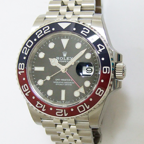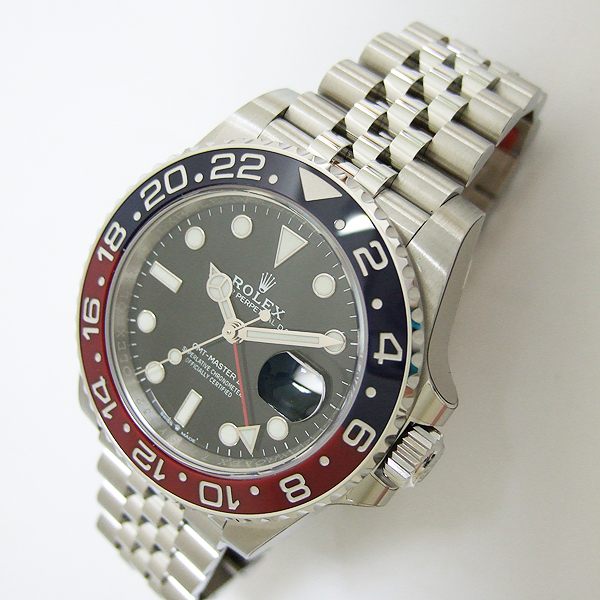 GMT-MASTER II 格林威治型天文台錶/型號:126710BLRO/ 採自動上鏈機芯/機芯編號:3186/ 機芯採用新研發的寶璣式雙層鈮鋯合金藍色鋼,31顆紅寶石, 五方位調校,雙層合金游絲,有四顆微調快慢螺絲,橫跨式擺輪橋板,KIF避振裝置,天文台認證(C.O.S.C.)/ 錶徑:40mm/ 具時ˋ分ˋ秒針指示及 3 點方位日期顯示窗,可轉動外圈配 CERACHROM 字圈及24小時指針,可獨立調校的12小時指針,方便同時顯示兩地時間/ 黑色面盤/ 夜光指針及時標/ 紅及藍色雙色陶瓷合金雙向旋轉外圈/ 錶盤內圈刻有一圈防偽 ROLEX 字樣及流水號碼/ 藍寶石水晶玻璃鏡面/ 原廠不鏽五珠式錶帶及折疊式錶扣/ 防水100米. |