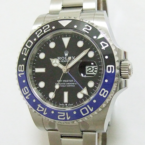 GMT-MASTER II 格林威治型天文台錶/型號:126710BLNR/ 採自動上鏈機芯/機芯編號:3186/ 機芯採用新研發的寶璣式雙層鈮鋯合金藍色鋼,31顆紅寶石, 五方位調校,雙層合金游絲,有四顆微調快慢螺絲,橫跨式擺輪橋板,KIF避振裝置,天文台認證(C.O.S.C.)/ 錶徑:40mm/ 具時ˋ分ˋ秒針指示及 3 點方位日期顯示窗,可轉動外圈配 CERACHROM 字圈及24小時指針,可獨立調校的12小時指針,方便同時顯示兩地時間/ 黑色面盤/ 夜光指針及時標/ 黑及藍色雙色陶瓷合金雙向旋轉外圈/ 錶盤內圈刻有一圈防偽 ROLEX 字樣及流水號碼/ 藍寶石水晶玻璃鏡面/ 原廠不鏽鋼蠔式錶帶及折疊式錶扣/ 防水100米. |