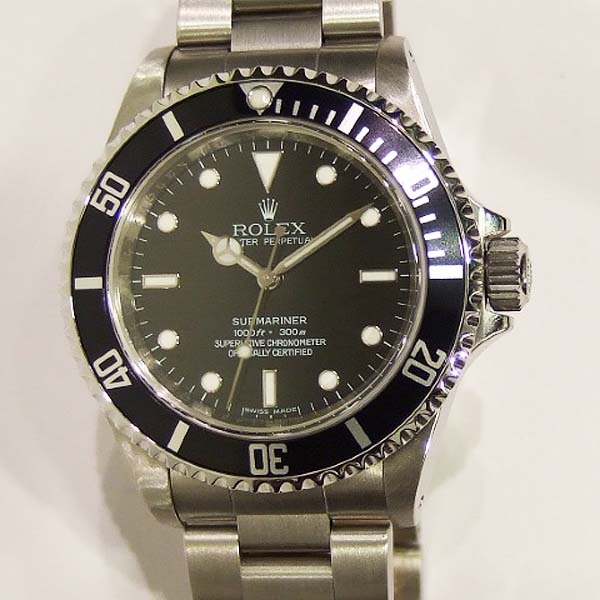 蠔式恆動潛腕錶/ 型號:14060 M/ 採自動上鏈機芯/ 機芯編號:3035,27顆紅寶石,五方位調校,雙層合金游絲,四臂環形合金擺輪,雙向自動上鏈,KIF避振裝置/ 錶徑:40mm/ 具時ˋ分ˋ秒針指/ 黑色面盤/ 夜光指針及立體螢光時標/ 黑色單向旋轉潛水計時外圈,可計算入水時間/ 藍寶石水晶玻璃鏡面/ 原廠不銹鋼質蠔式鏈帶及折疊式錶扣. |