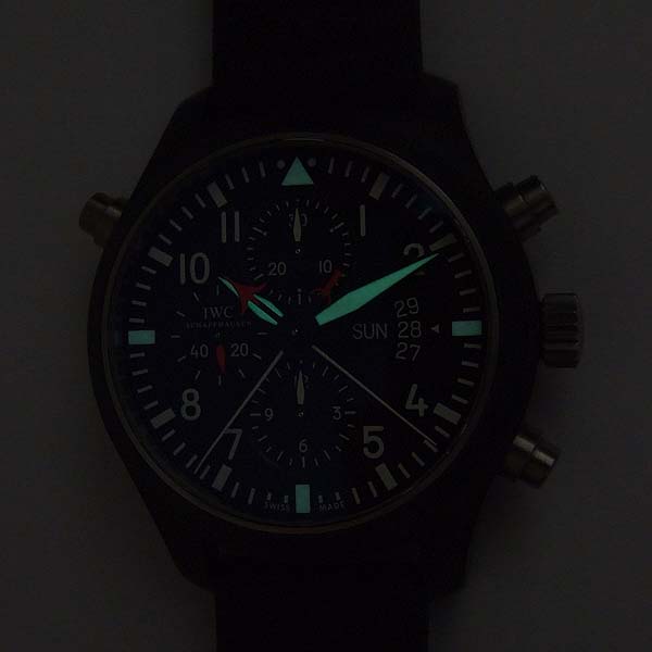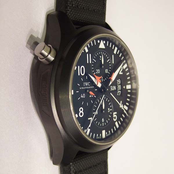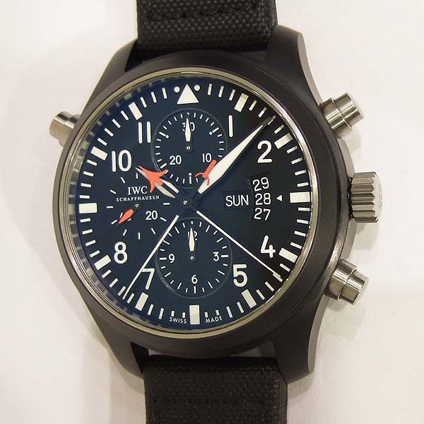 TOP GUN 海軍空戰飛行員雙追針計時碼錶/ 型號:IW 379901/ 採自動上鏈機芯/ 機芯為:29石,振頻 28800 A/h,動力儲存 44 小時/ 具時ˋ分ˋ秒指示/ 3點方位日期及星期顯示窗/ 雙追針計時碼錶功能/ 黑色面盤/ 白色阿拉伯數字及標誌線時標(具夜光效果)/ 白色指針(具夜光效果)/ 陶瓷錶殼/ 大型軍錶錶冠/ 手錶尺寸: 46mm 錶徑ˋ厚:17.8mm / 防眩藍寶石水晶玻璃鏡面/ 後底蓋有 TOP GUN 字樣圖驣/ 搭配 22mm 尼龍表面牛皮軍錶帶/ 原廠鈦合金一般穿扣/ 防水: 60米. |