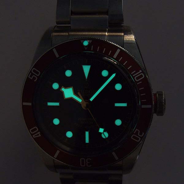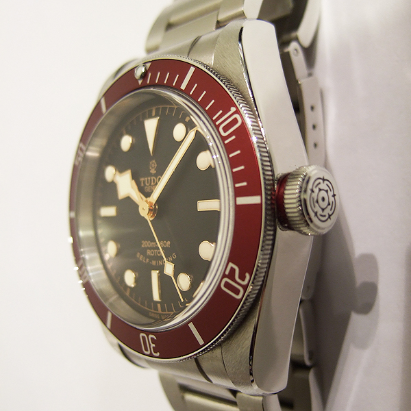 復古型蠔式型潛水錶/ 採不銹鋼材質/ 採自動上鏈機芯,雙向自動上鏈/ 錶徑:41mm/ 具時ˋ分ˋ秒及日期顯示/ 黑色面盤/ 金色立體螢光刻度時標/ 金色螢光指針/ 酒紅色簡易計時可單向旋轉外圈,可計算入水時間/ 旋入式大型錶冠,錶冠上有玫瑰標誌/ 旋入式底蓋/ 復古款弧形藍寶石水晶玻璃/ 原廠不銹鋼鏈帶及原廠黑色尼龍錶帶/ 防水深度 200 米.