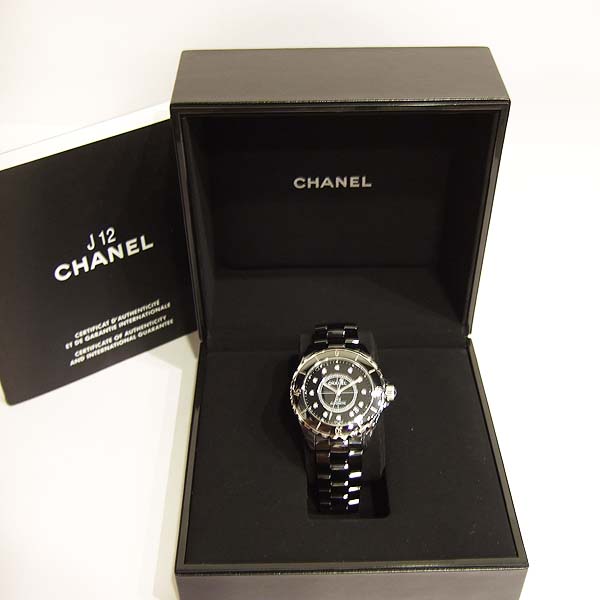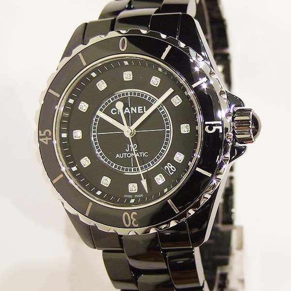J 12 38mm 錶徑自動腕錶/ 採用自動上鏈機芯/ 具時ˋ分ˋ秒指示/ 4~5 點間日期視窗/ 黑色錶面/ 鑽石時標/ 夜光指針/ 全錶採抗磨耗精密陶瓷材質/ 鋼質摺疊式錶扣/ 錶徑: 38 mm/ 藍寶石水晶鏡面/ 防水 100 米.