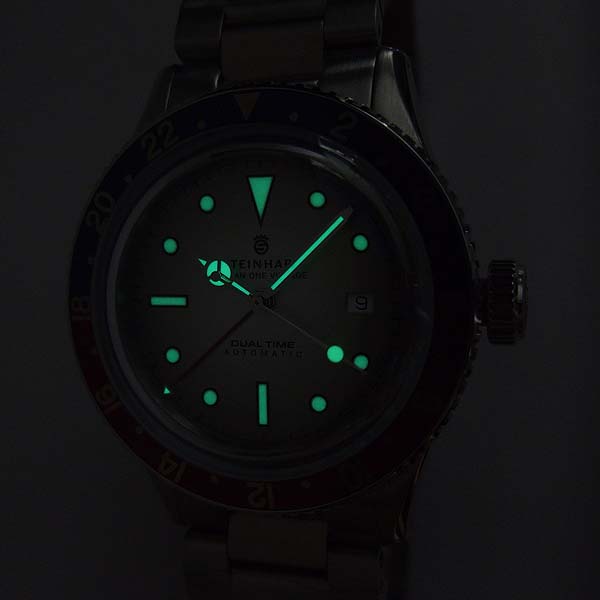 OCEAN One Vintage DUAL Time 潛水腕錶/ 型號: 103-0495 / 採 ETA 2893-2 自動上鏈機芯,機芯 21 石/ 動力儲存:42小時/ 具時ˋ分ˋ秒大三針指示,3點方位日期窗(單數顯示黑色,雙數顯示紅色)/ 銀灰色舊化面盤, 12 點方位印有廠名及 DUAL Time 字樣/ 銀色舊化指針具夜光效果/ 舊化處理 標誌型時標/ 全錶拋光或霧 316 L 不鏽鋼材質/ 舊化藍及紅色 24 時制外圈,可顯示地 2 地時間/ 手錶尺寸: 42mm 錶徑,厚:16 mm ,重 194克 / 防炫金魚缸圓弧式藍寶石水晶玻璃/ 搭配原廠 22mm 蠔式錶帶及折疊式錶扣/ 防水: 300 米. |