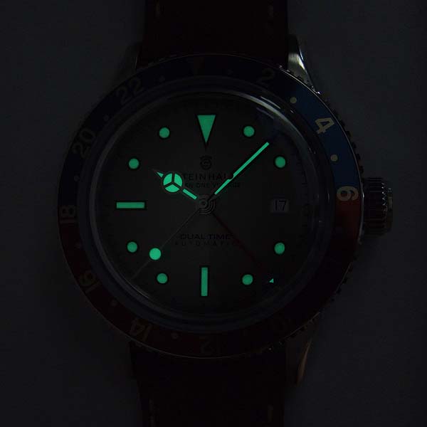 OCEAN One Vintage DUAL Time 潛水腕錶/ 型號: 103-0495 / 採自製編號: A 10/24 自動上鏈機芯,機芯 25 石/ 動力儲存約:38小時/ 具時ˋ分ˋ秒大三針指示,3點方位日期窗(單數顯示黑色,雙數顯示紅色)/ 銀灰色舊化面盤, 12 點方位印有廠名及 DUAL Time 字樣/ 銀色舊化指針具夜光效果/ 舊化處理 標誌型時標/ 全錶拋光或霧 316 L 不鏽鋼材質/ 舊化藍及紅色 24 時制外圈,可顯示地 2 地時間/ 手錶尺寸: 42mm 錶徑,厚:16 mm ,重 195克 / AR 塗層防炫金魚缸圓弧式藍寶石水晶玻璃/ 搭配原廠 22mm 咖啡色舊化牛皮錶帶及折疊式錶扣/ 防水: 300 米. |