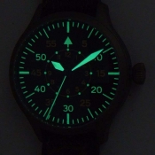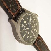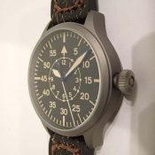 簡述: Steinhart 德國品牌軍錶/ Nav B-Uhr 47 vintage TITANIUM B-Type..飛行員軍錶/ 型號: 107-0403/ 採瑞士 ETA2824-2 自動上鏈機芯/ 機芯為:25石ˋ動力儲存約:42小時/ 具時ˋ分ˋ秒指示/ 黑色面盤/ 阿拉伯數字及標誌線時標/ 藍色邊緣指針(具夜光效果)及時標/ 鈦合金霧面噴砂舊化處理錶殼,鋼質後底蓋/ 大型軍錶錶冠/ 錶背刻有使用之材質ˋ機芯表/ 手錶尺寸: 47mm 錶徑ˋ厚:14.2mmˋ重 120 公克 / AR 塗層藍寶石水晶玻璃鏡面/ 搭配 22mm 深咖啡色彷舊處理錶帶/ ㄇ字錶扣/ 防水: 30米.
